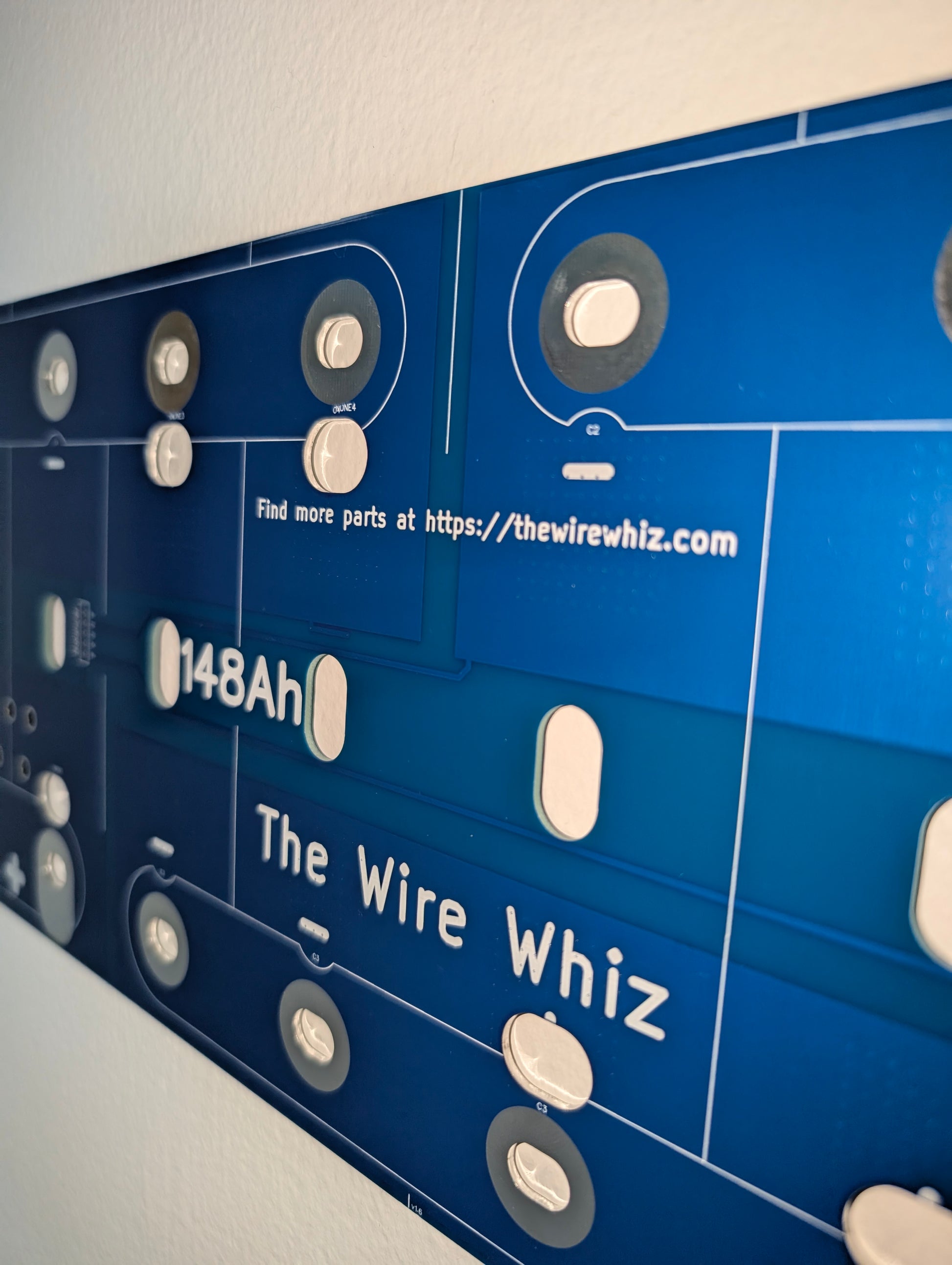 These heavy-duty busbar PCBs are designed for building an ultra-compact and powerful 12V 148Ah LiFePO4 battery using eight LEV60F cells. Capable of delivering up to 800A continuous (9,600W) and 1,200A burst (14,400W), they’re ideal for high-performance 12V applications.